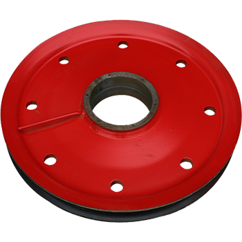 滑輪幅板采用幅板壓制成型,滑輪兩支點受力,與輪轂成三角形,加強滑輪的穩(wěn)定性,此結構新穎,為我司獨有滑輪生產工藝,相同受力情況下,可減少滑輪重量,R槽為車刀成型,因此與輪轂軸的同軸度更高,R槽跳動小,性價比極高。